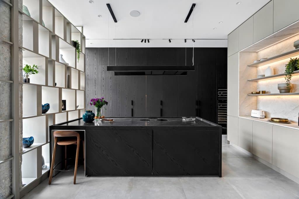 כך למשל ניתן למצוא מכשירי חשמל רבים מוסתרים מאחורי ארון עם דלתות כיס עם גימור זהה למטבח, תאורות מתוחכמות, נסתרות או גלויות ועוד אלמנטים המשווים למטבח מראה עדכני ומודרני.